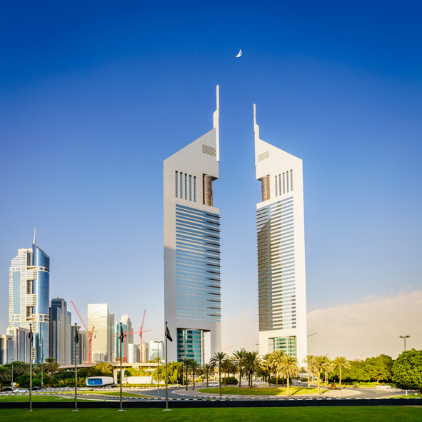 - 파리개선문 모양의 두바이 국제금융센터 에미레이츠 타워, 무역센터 조망